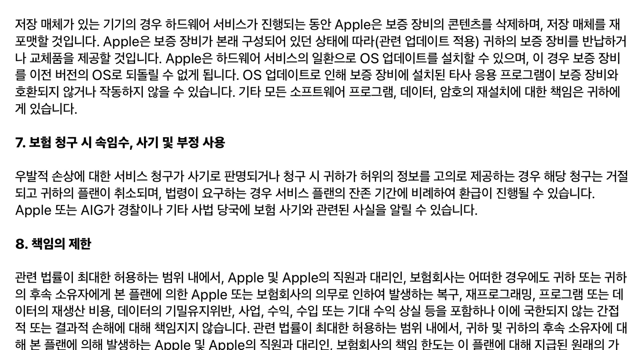 애플은 23년 1월 18일부로 애플케어플러스 약관을 개정했습니다.